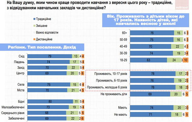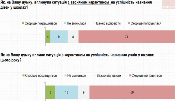 Согласно социологическим исследованиям, украинцы убеждены в том, что дистанционное обучение плохо сказалось на уровне знаний их чад, а также выразили стойко негативное мнение о данной форме обучения.